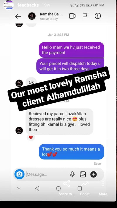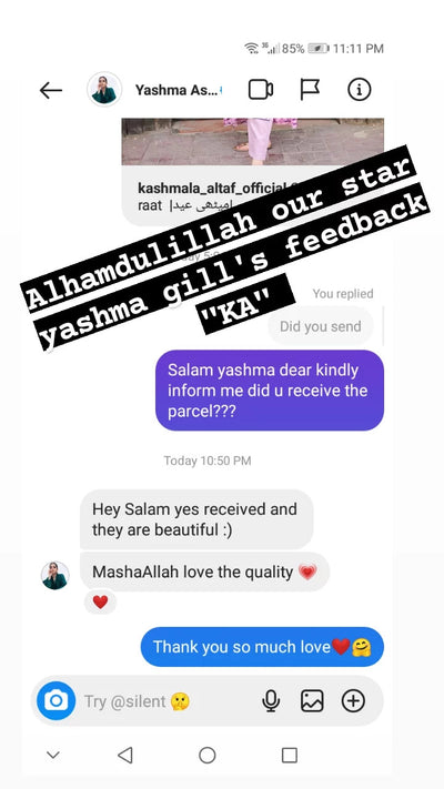 * Stuck Shipments: Kashmala Altaf is not responsible for any packages held, delayed, or stuck at customs. We do not offer refunds if a customer fails to clear their shipment from their local customs office.