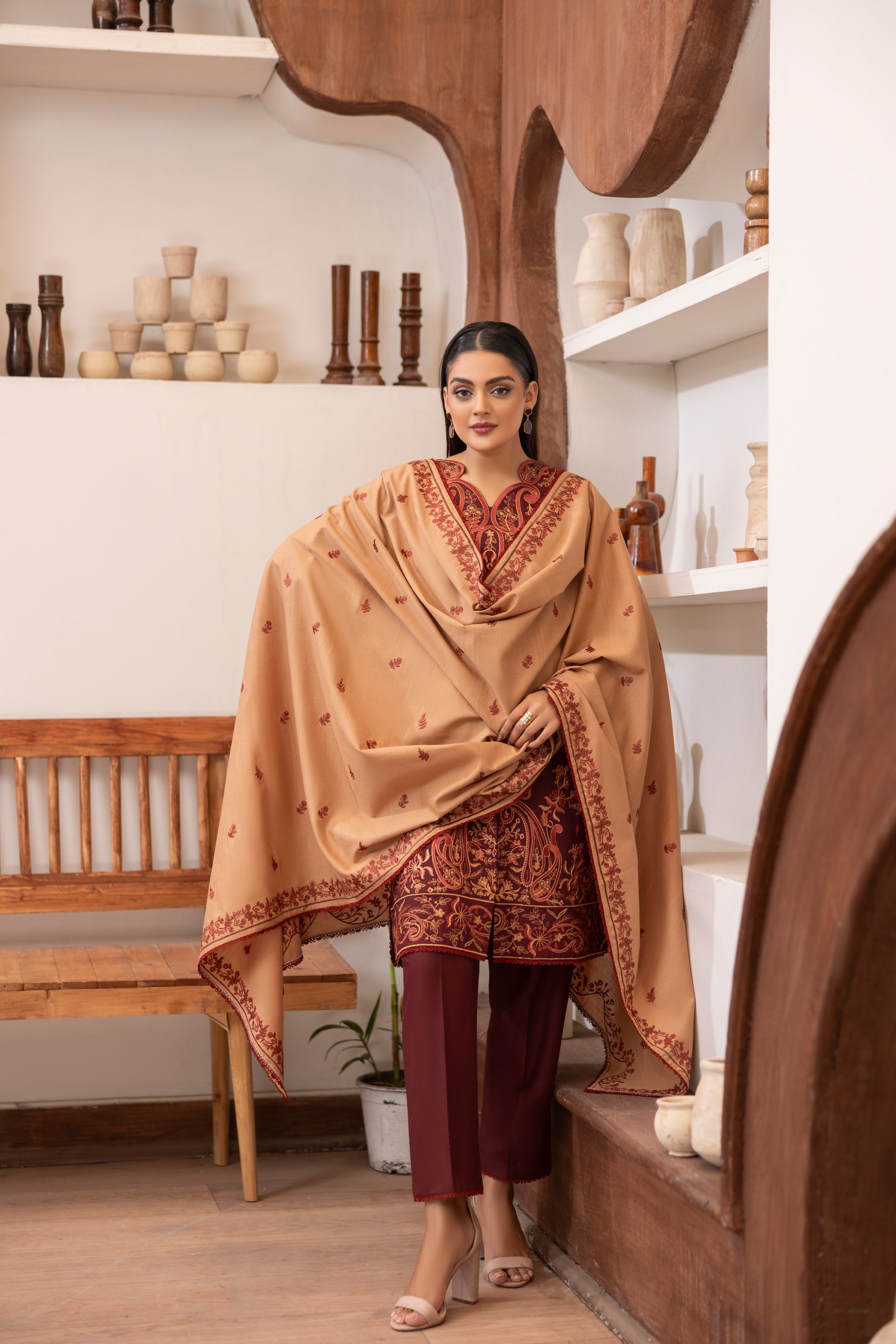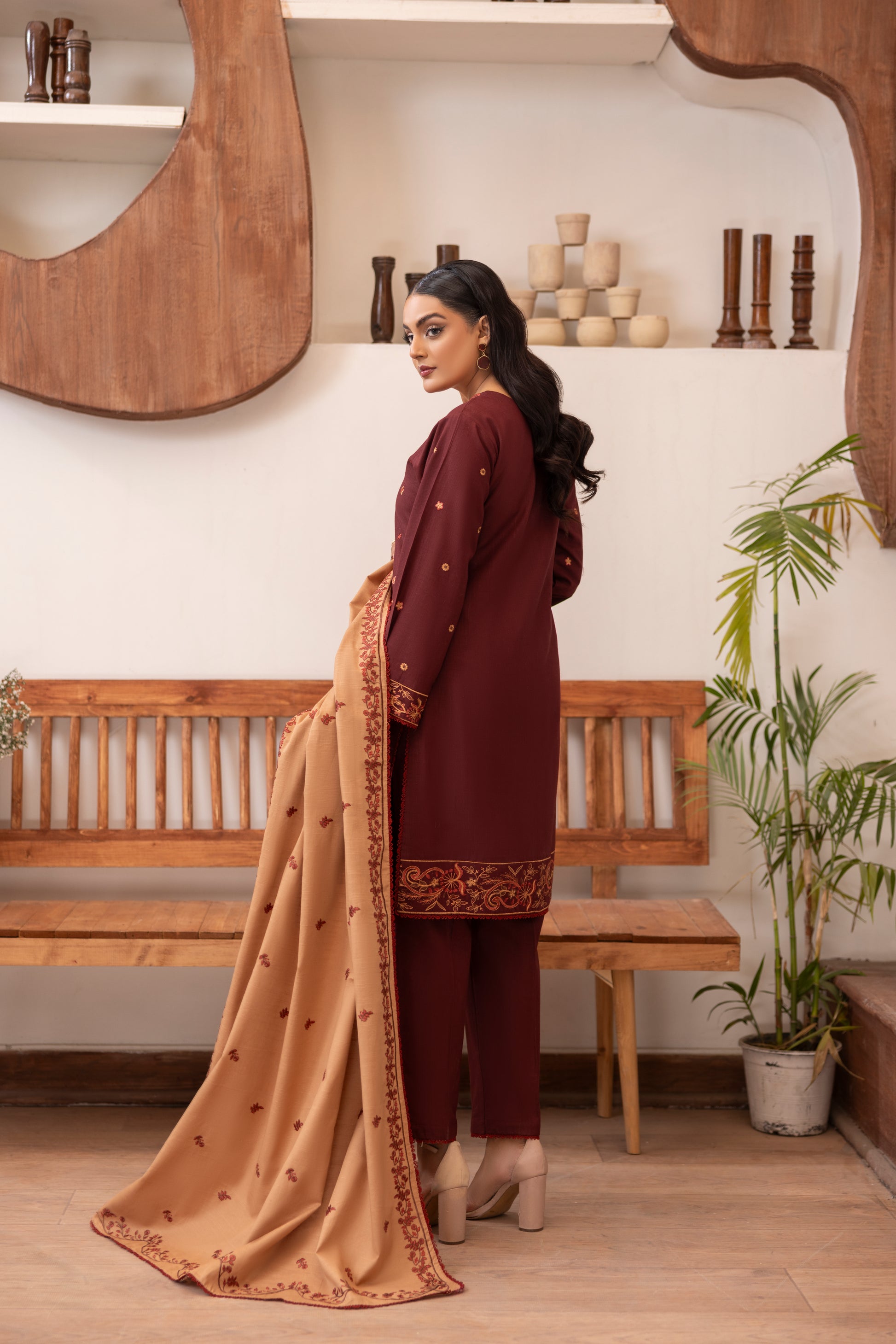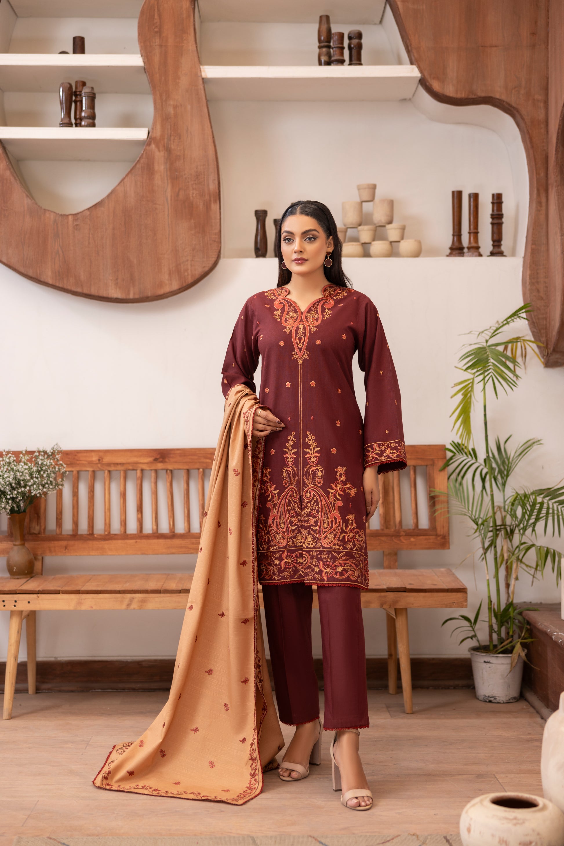 Fabric Details: Slub Khaddar embroidered shirt paired with plain khaddar trouser