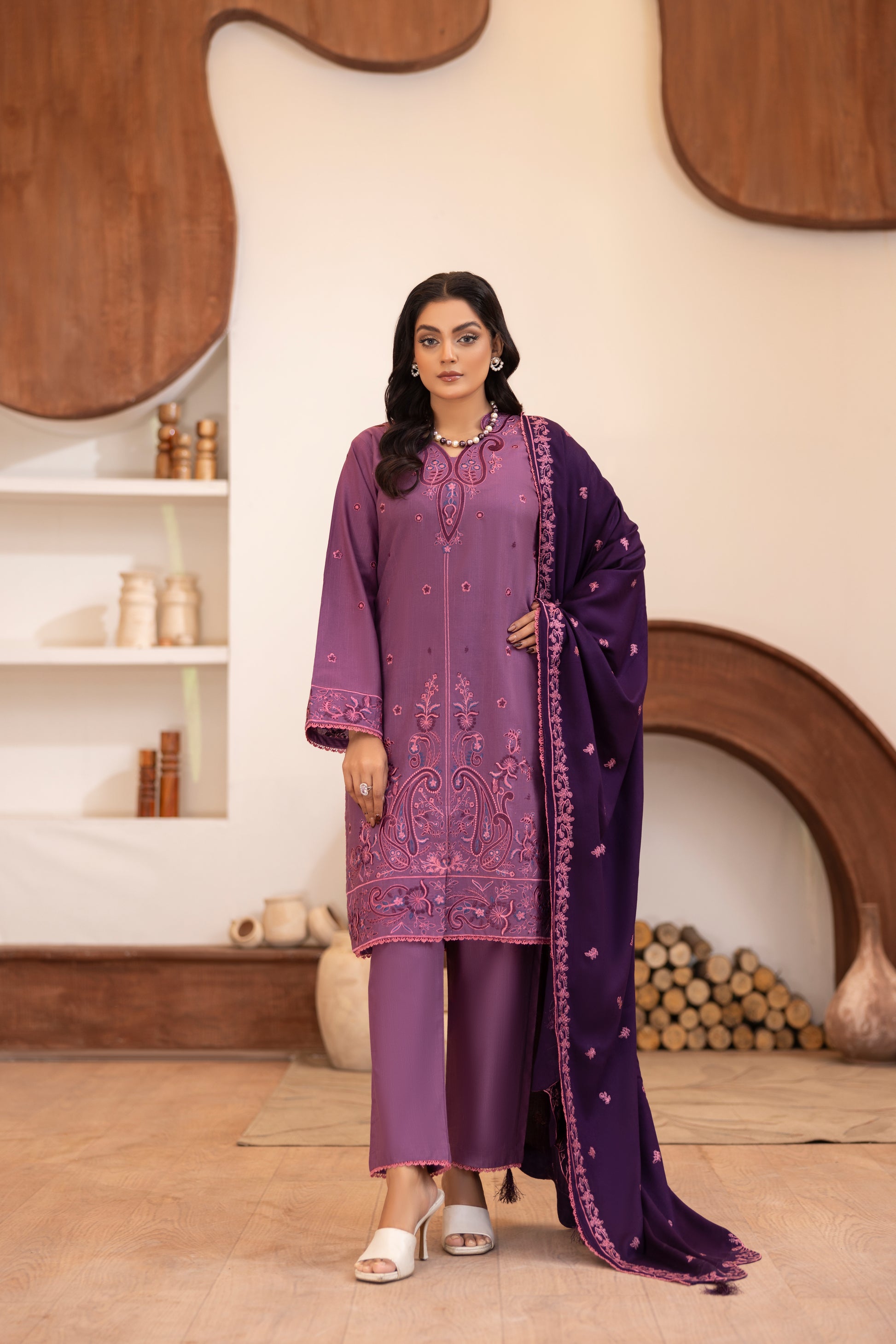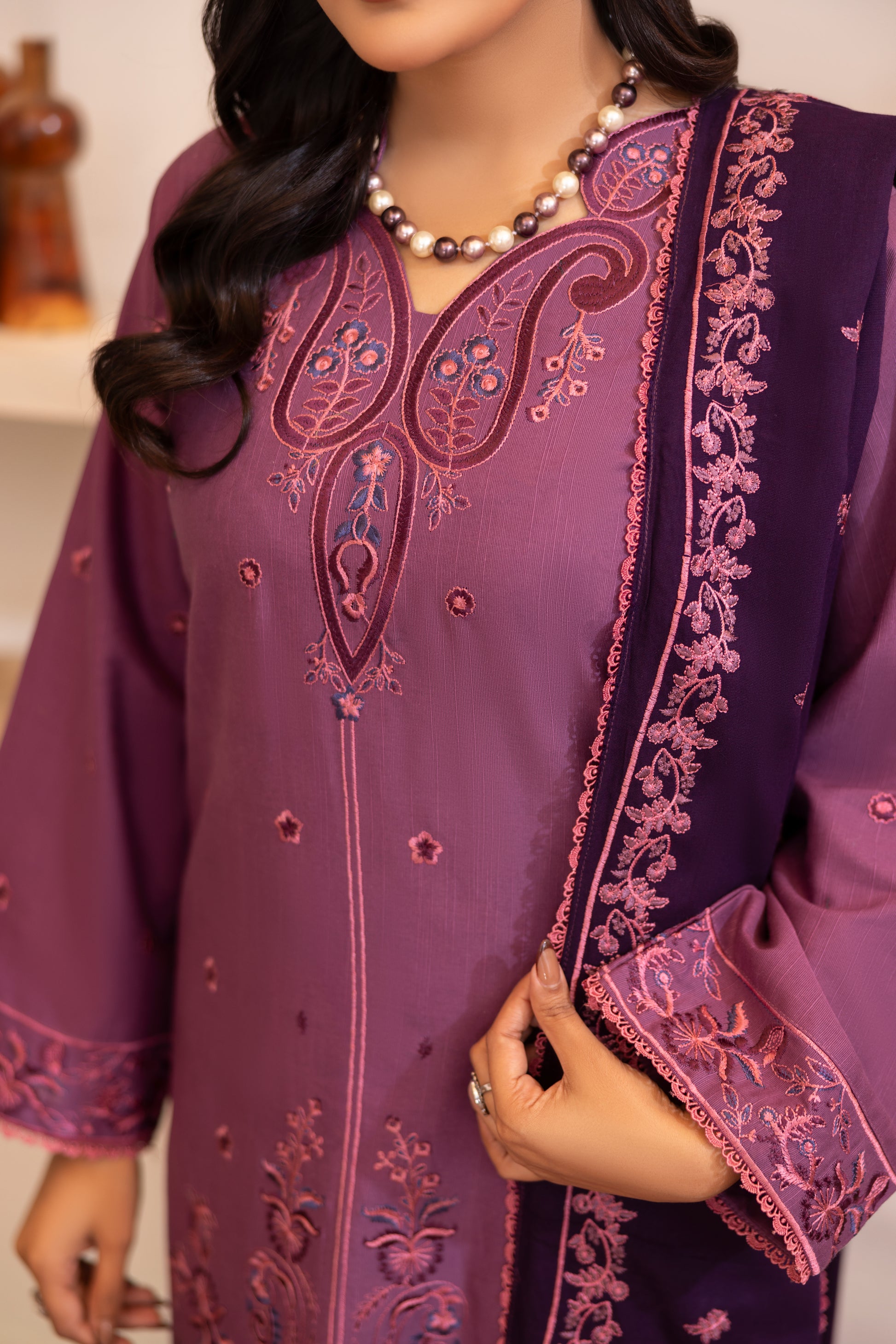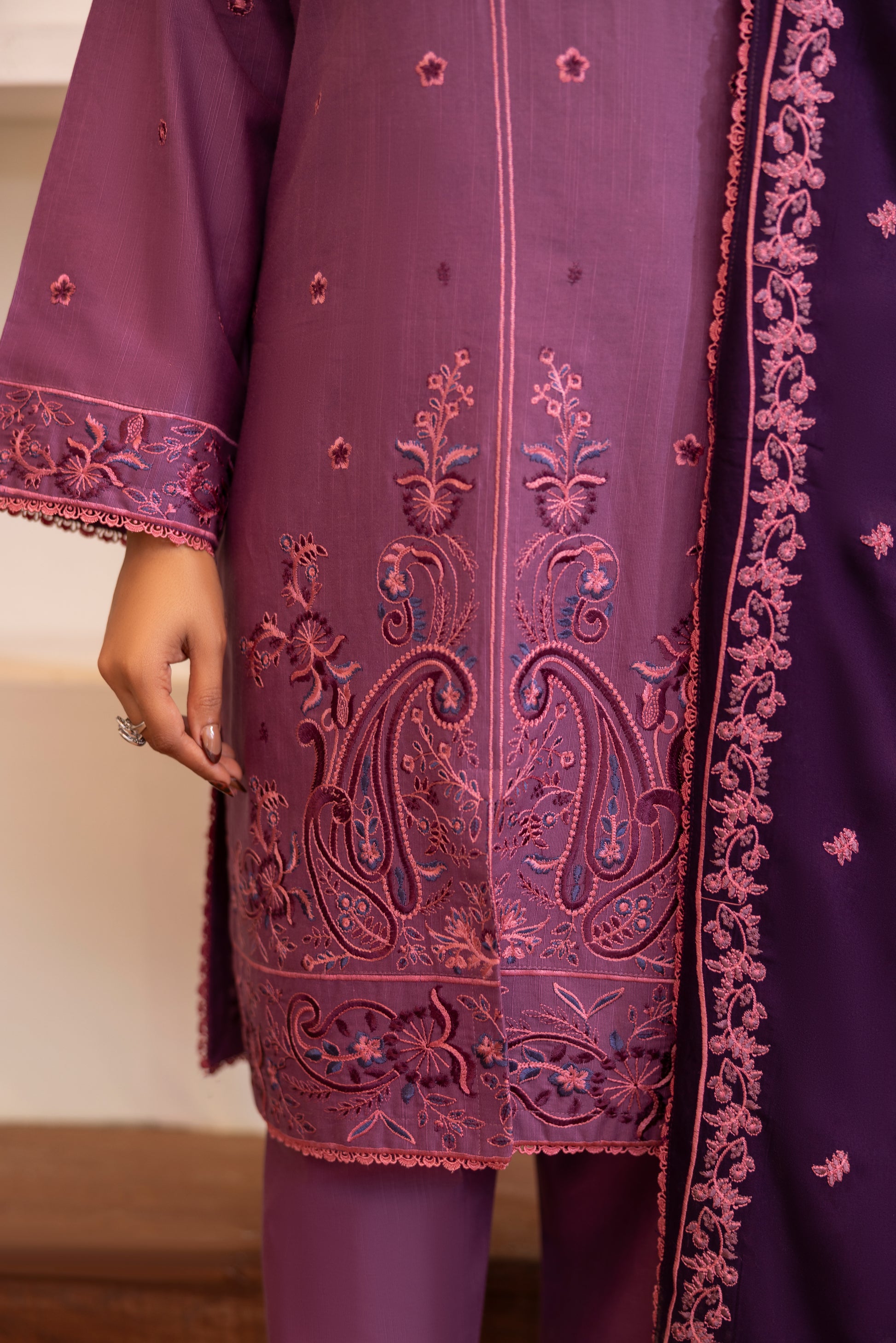 Fabric details: Slub khaddar embroidered shirt paired with same trouser