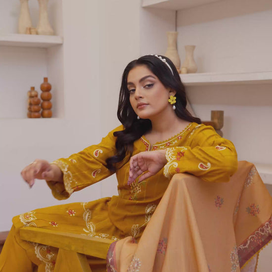 Brighten your wardrobe with the Gul Dana ensemble, a perfect fusion of premium mid-season fabric and exquisite Turkish-inspired details. This fully stitched set is designed for a sophisticated look that transitions effortlessly through the seasons.