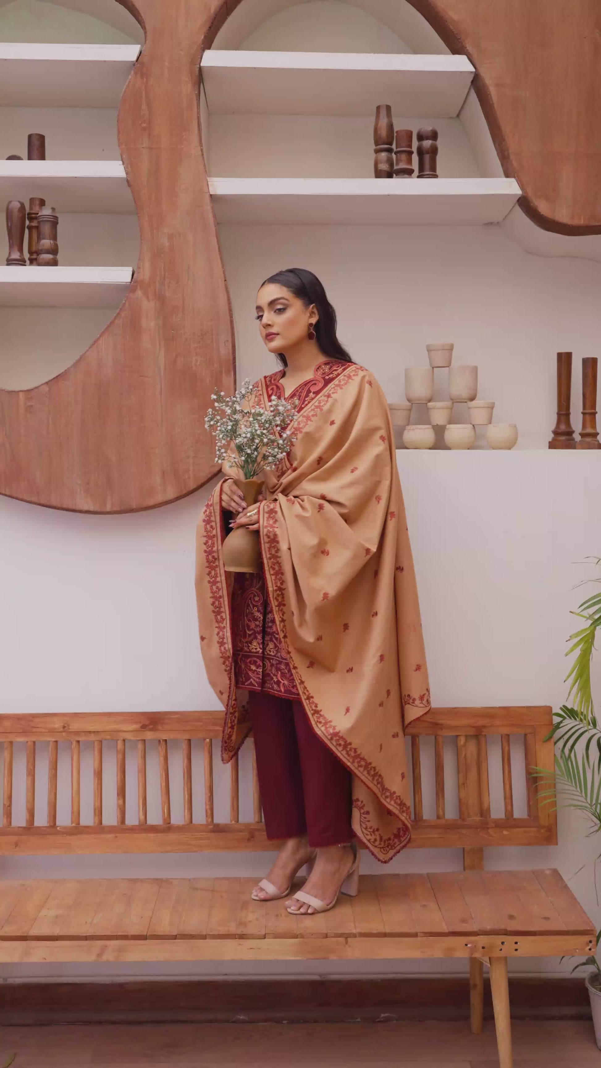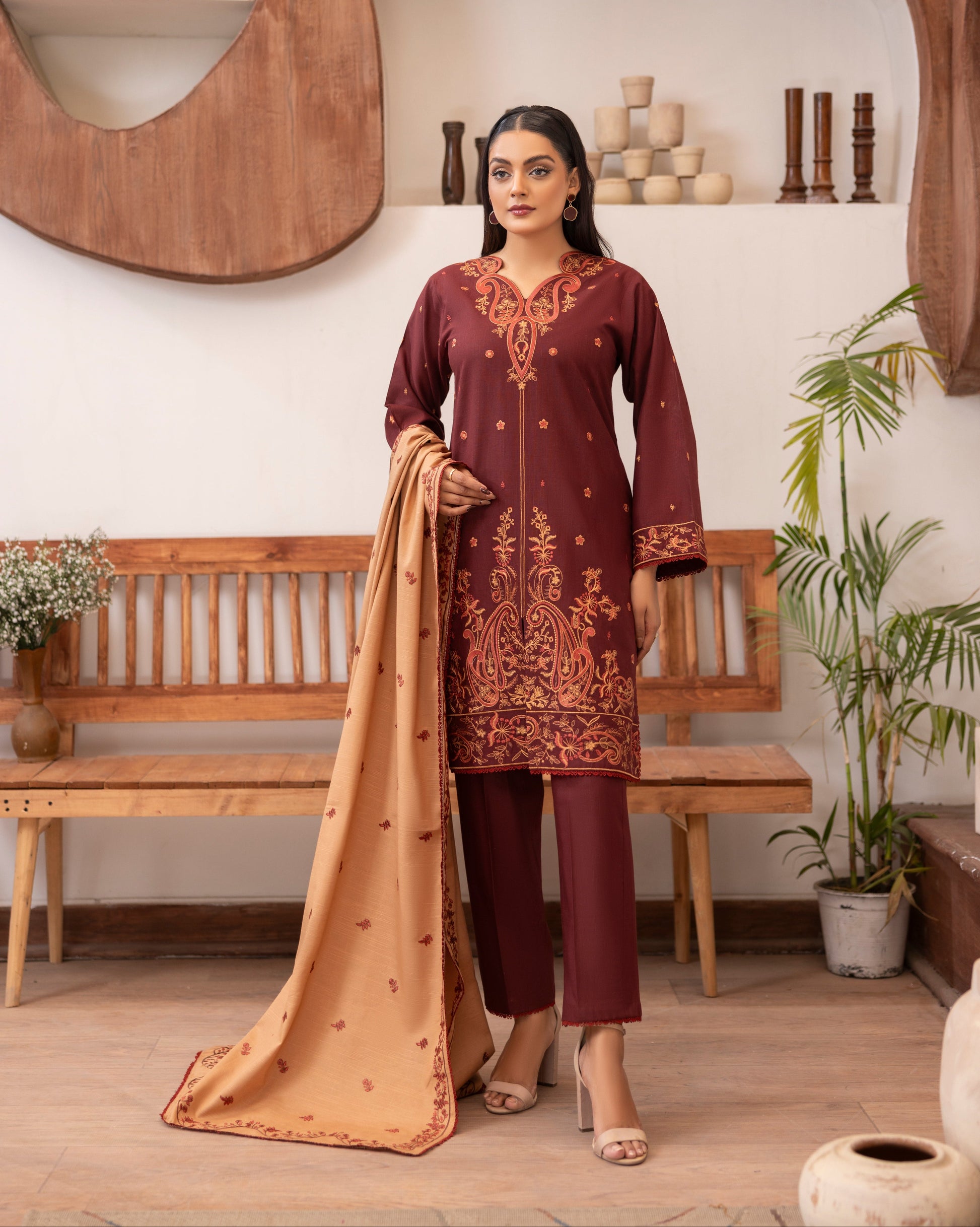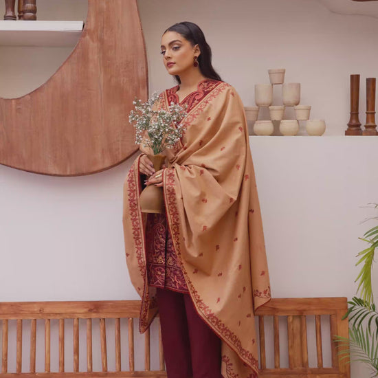 * Shawl: Complemented by a fully embroidered khaddar shawl, designed to provide warmth while completing the regal look.