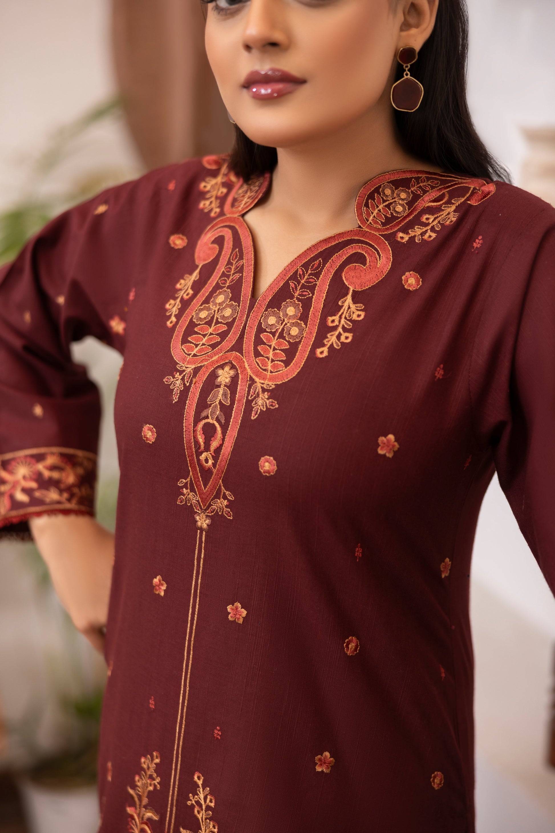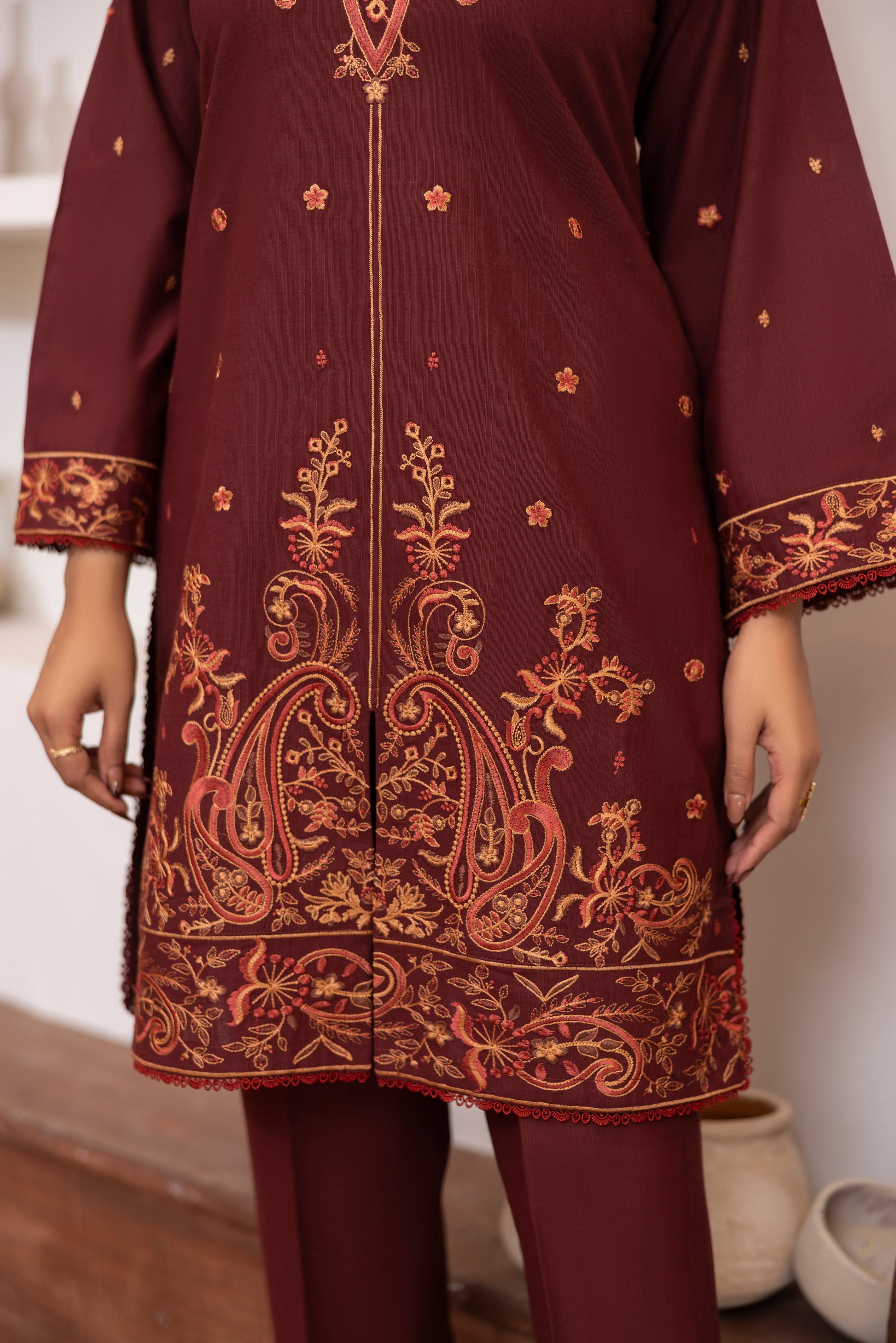 * Shirt: A beautifully embroidered Slub Khaddar shirt that offers both comfort and a sophisticated aesthetic.