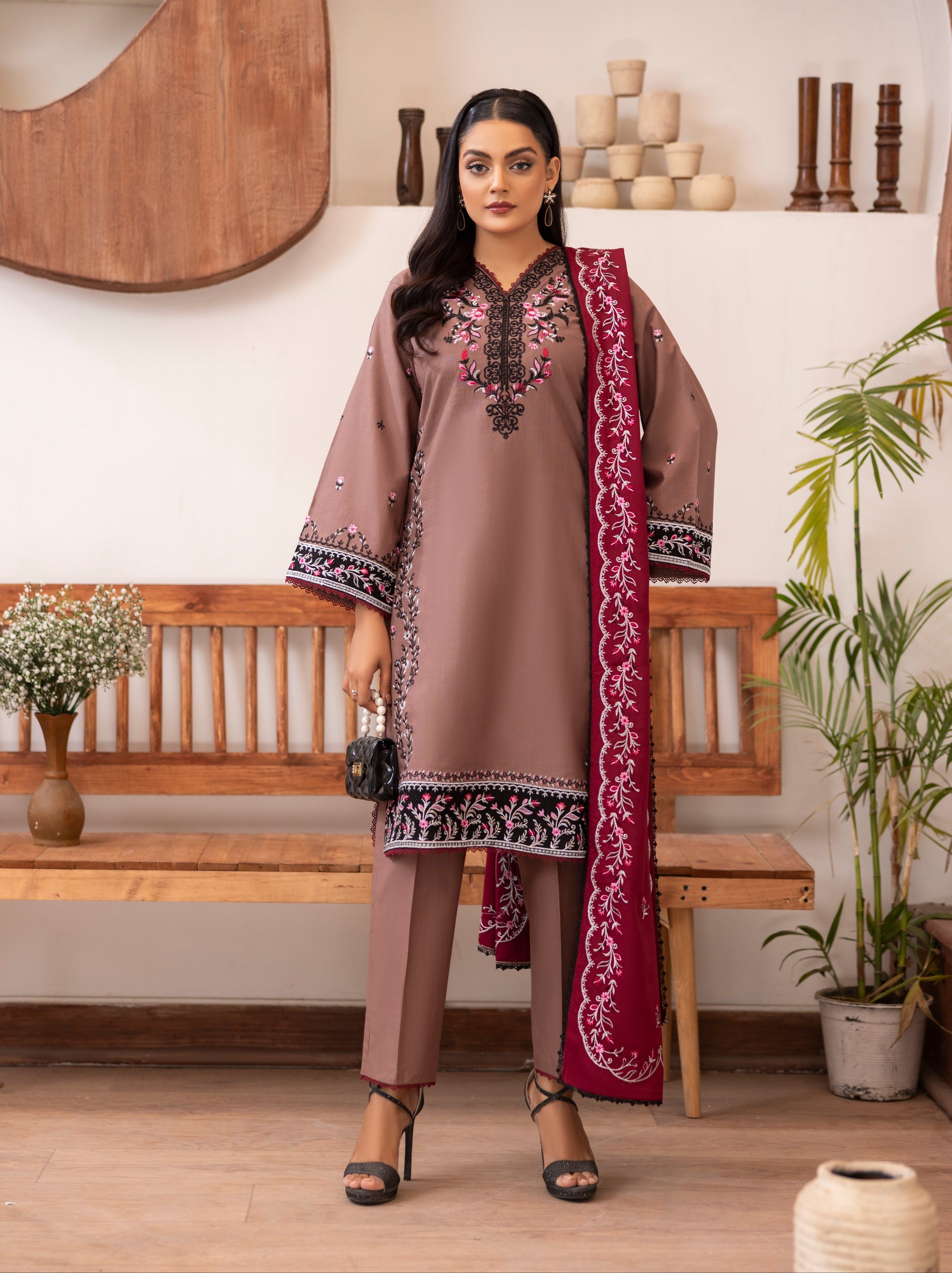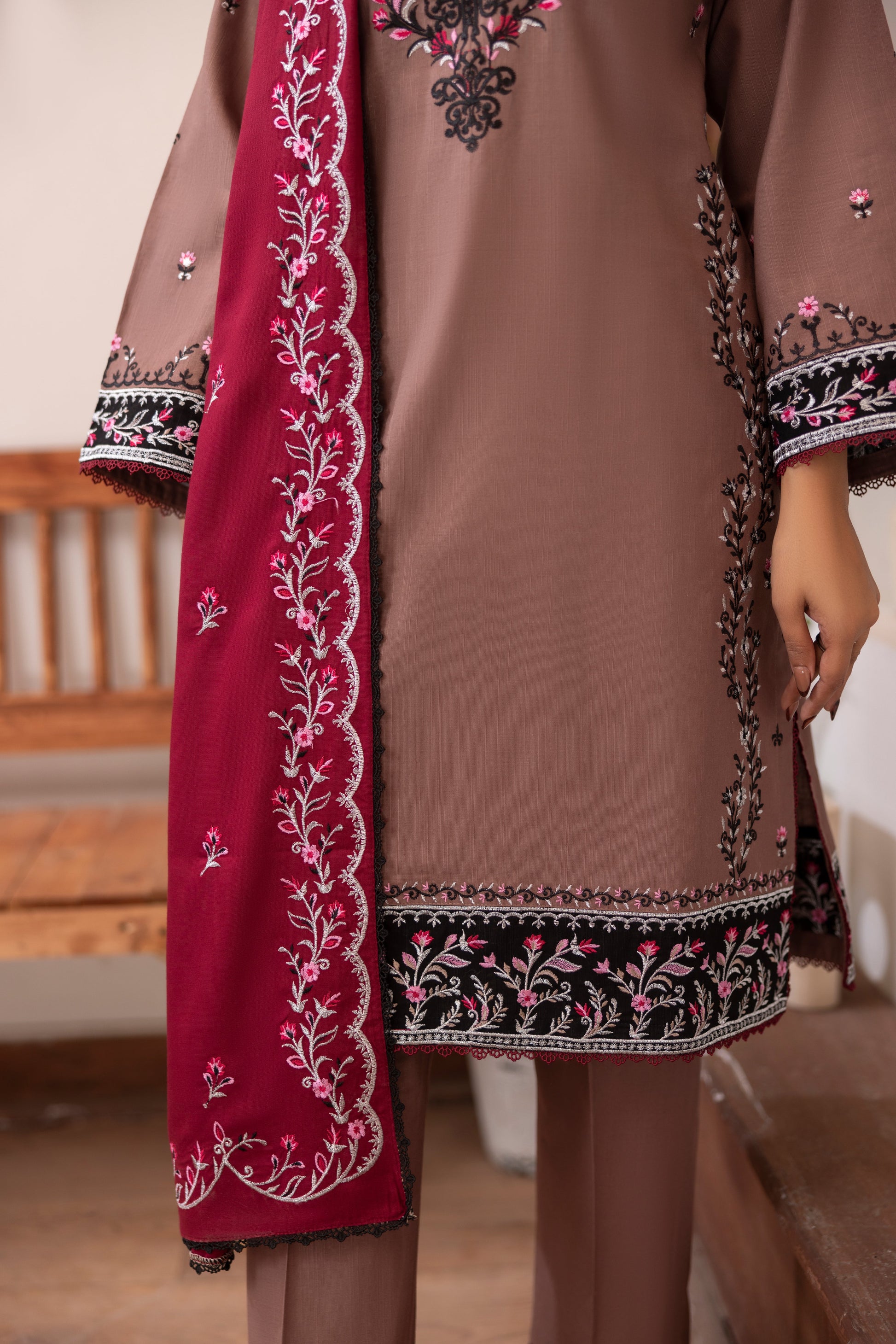 * Fabric Details: This set features a meticulously embroidered Slub Khaddar shirt, paired with a coordinating plain khaddar trouser for a balanced aesthetic.